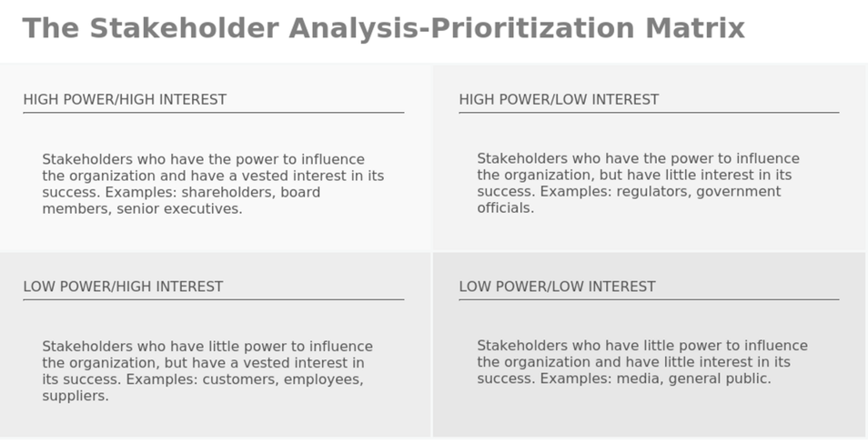 - Stakeholder Prioritization: Not all stakeholders wield the same level of impact on your project's success. Focus your attention and resources on those stakeholders with the highest influence and interest. By doing so, you maximize your effectiveness in managing the stakeholders that matter most. Check out the Matrix below from the Priority Matrix blog as an example of how to do this.